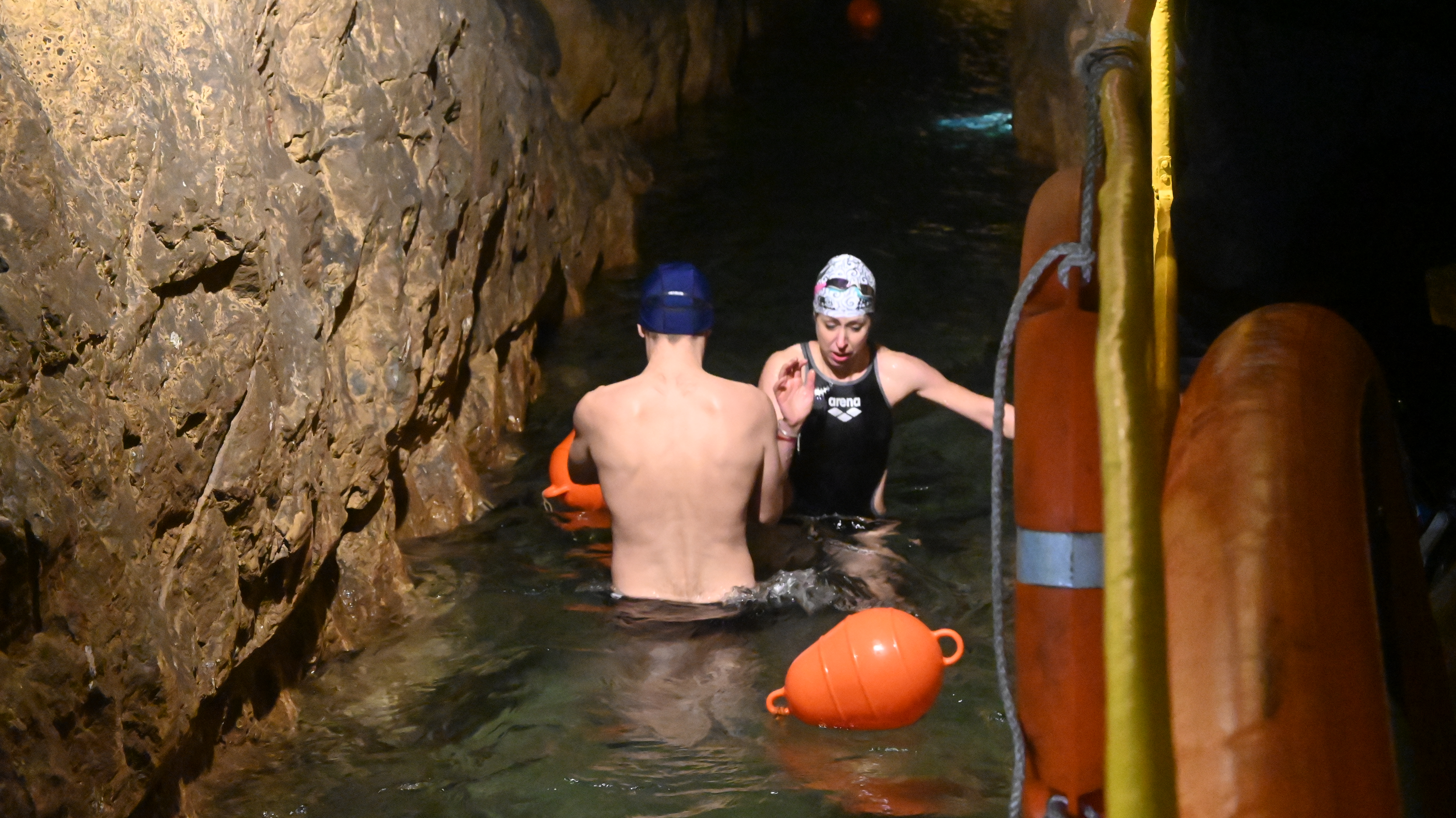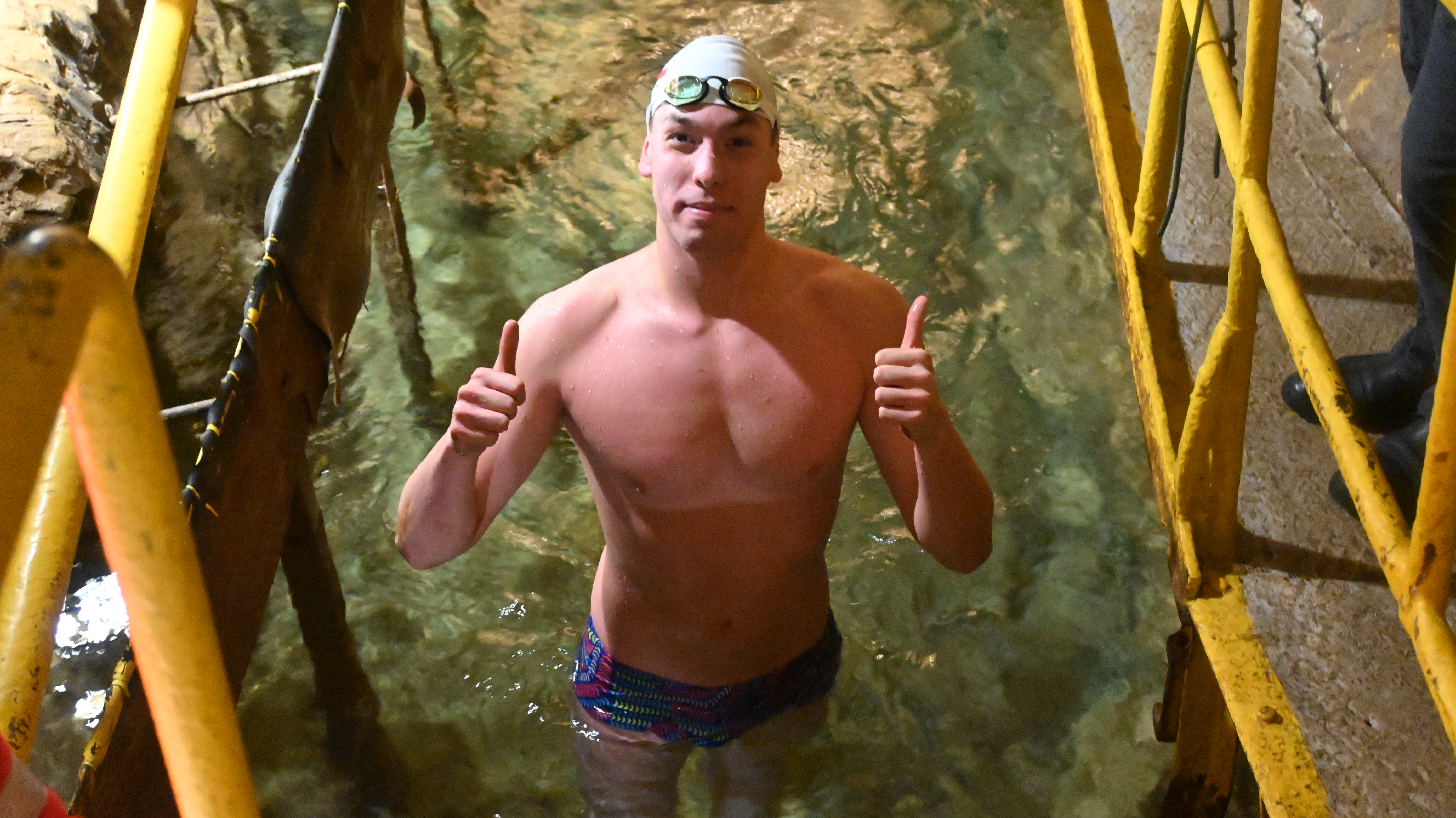 Zainteresowanie wydarzeniem było tak duże, że lista startowa zapełniła się w ciągu niespełna 4 tygodni. Dlatego profesjonaliści dostali szansę sprawdzenia swoich sił płynąc z szybu Ewa w kierunku szybu Sylwester, czyli pod prąd. Punktualnie o godz. 9:00 do wody wskoczył Marcin Szarpak, który w tym roku drugi raz z rzędu został Mistrzem Świata w Zimowym Pływaniu we francuskim Samoens i ustanowił rekord Guinessa na dystansie 1 km, I choć rekordzista świata ze Świętochłowic ma na swoim koncie wielkie sukcesy, to pływanie w podziemiach z listy UNESCO było dla niego czymś nowym, co jak sam podkreślił, na pewno zapamięta na dłużej.