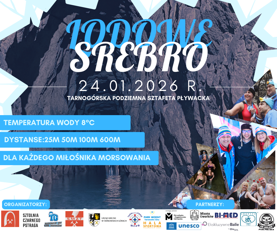 To jedyne takie wydarzenie w Polsce i jedno z nielicznych na świecie. Po raz piąty zapraszamy do Sztolni Czarnego Pstrąga w Tarnowskich Górach na Lodowe Srebro, czyli Tarnogórską Podziemną Sztafetę Pływacką. Już 24 stycznia 2026 roku miłośnicy zimowych kąpieli zanurzą się w krystalicznie czystej wodzie obiektu wpisanego na Listę Światowego Dziedzictwa UNESCO. Zapisy trwają.